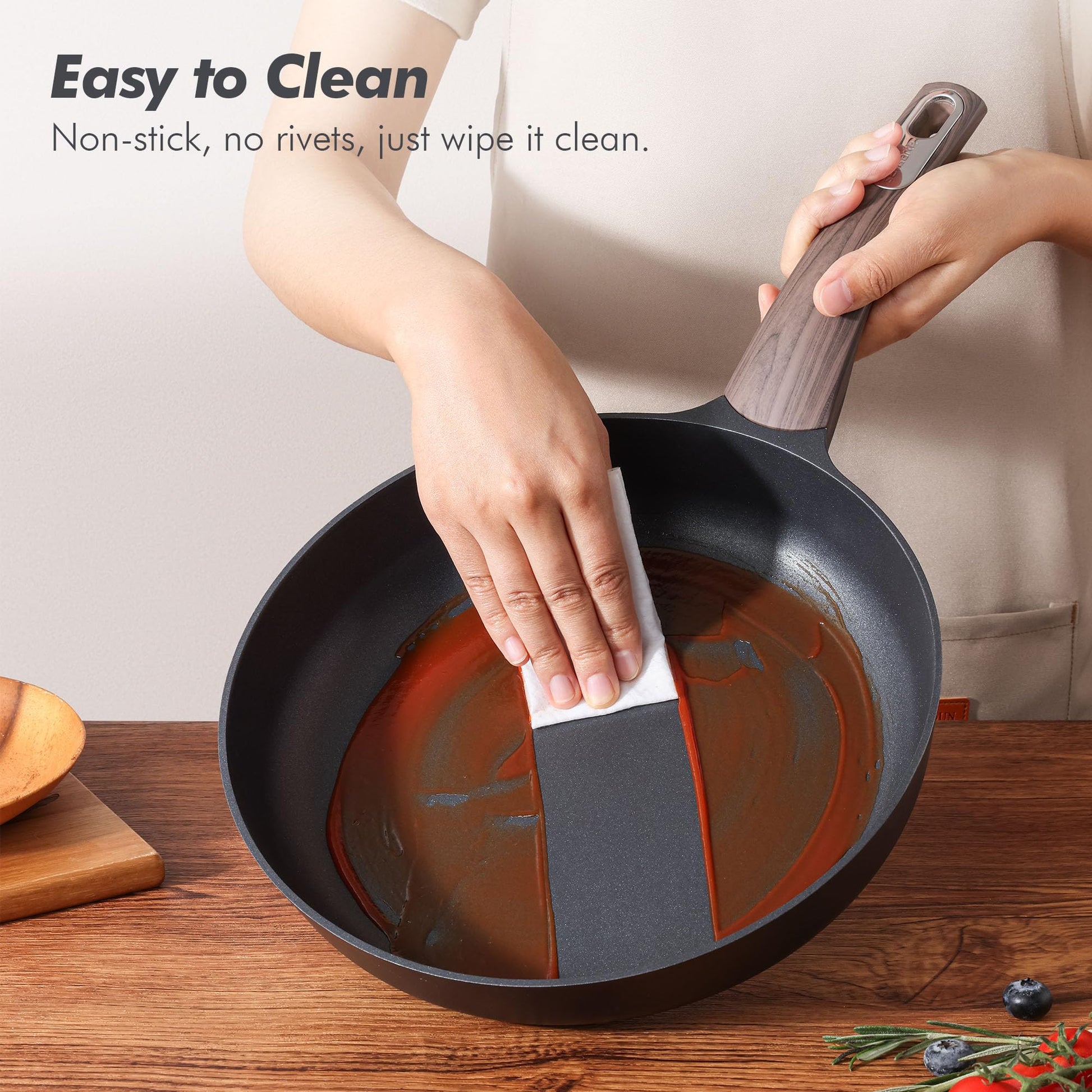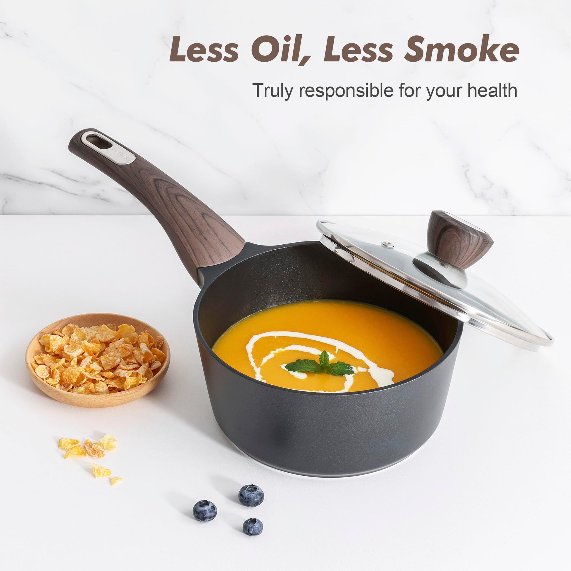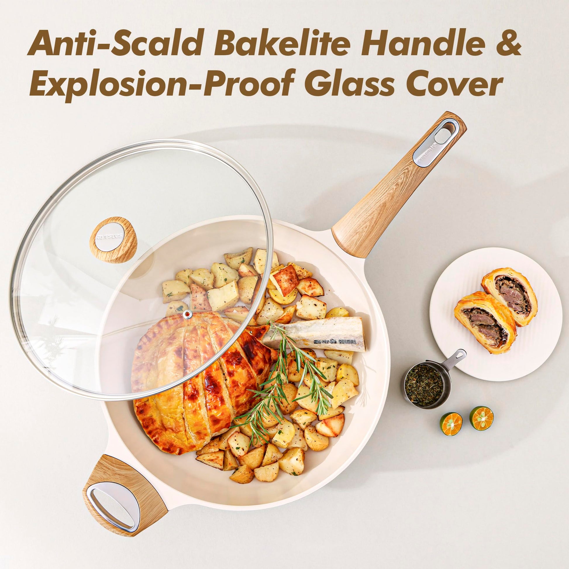 - Natural Nonstick - Ceramic non-stick is healthier than Teflon coating! Scratch-resistant with excellent food release. Only less oil is needed for cooking, for a healthy, low-fat diet.